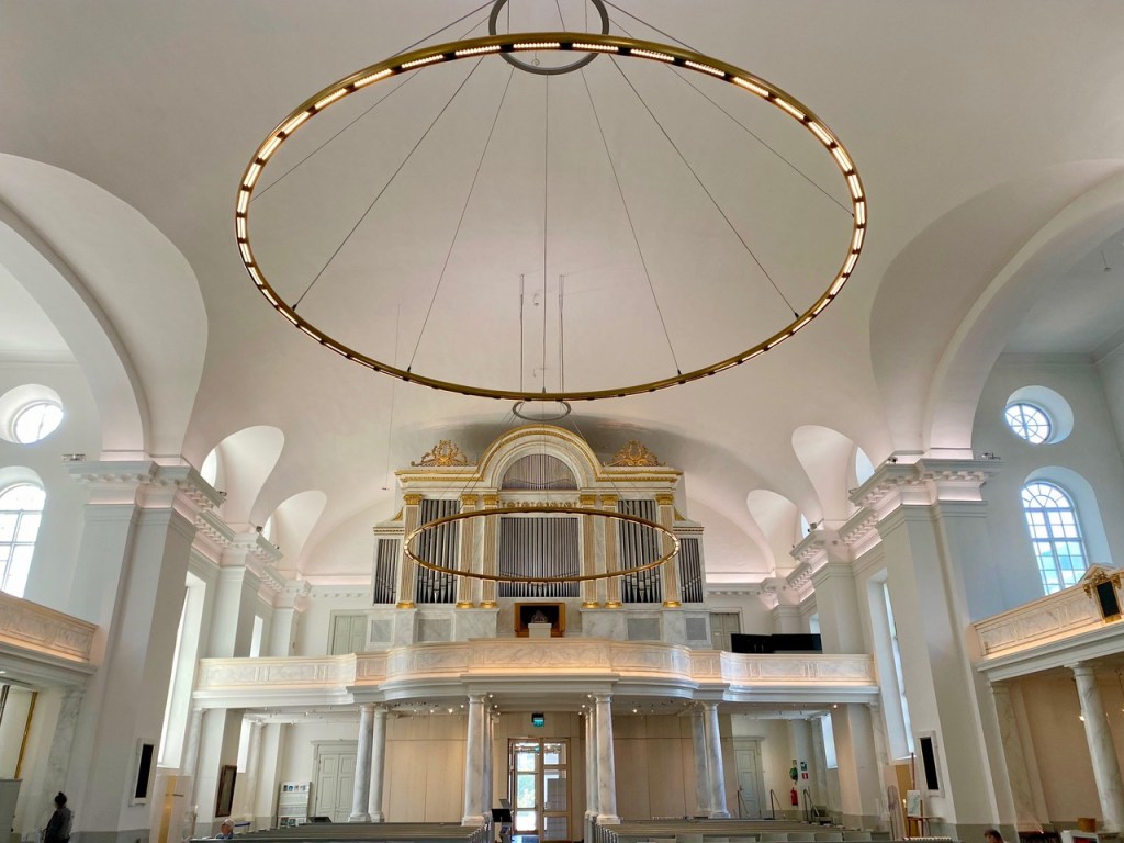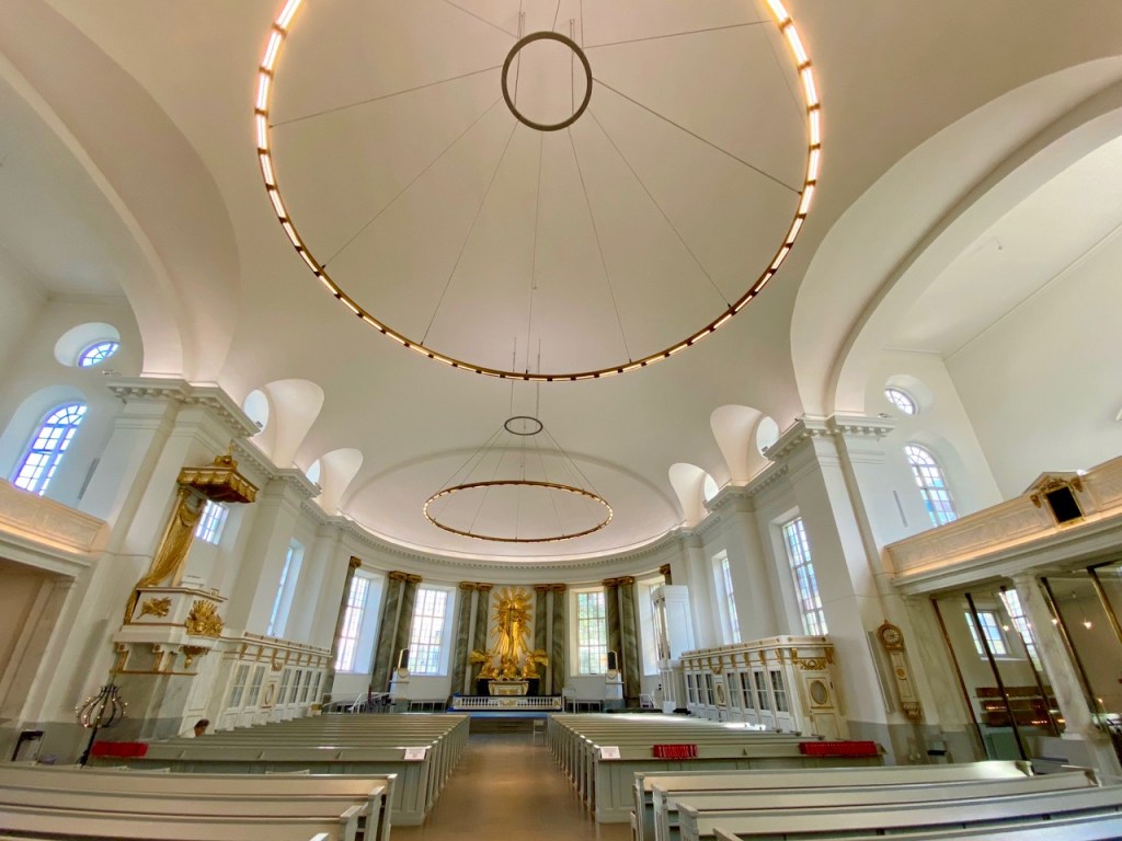 Gothenburg, Sweden, is a prosperous small city that is home to large R&D centers for AstraZeneca (recently in the news for its COVID vaccines) and Volvo car company. Gothenburg built its first Protestant cathedral in 1621. The town suffered a very large fire in 1802 and an earlier cathedral was completely destroyed. By 1815 they had rebuilt, resulting in this current cathedral.