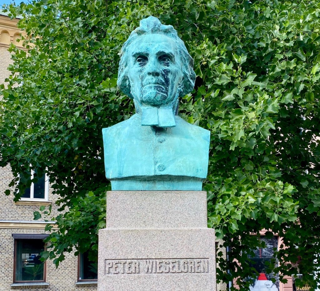 A statue of a rather stern-looking Peter Wieselgren decorates the grounds, now a public park. He was a Lutheran minister at the cathedral in the 1830s-40s and was instrumental in the Swedish temperance movement. At that time Swedes were poor, drinking was heavy, and the spirit of choice was Brännvin, a liquor distilled from potatoes, essentially Swedish vodka, now made into aquavit. His efforts led to laws that rationed alcohol. (A vote on outright prohibition failed in 1922 51%-49%.) In the 1960s, rationing was replaced by very high taxes that remain in effect to this day. Any serious drinker in southern Sweden makes road trips to Germany for their cheap booze.