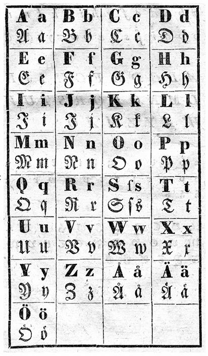 From Präst Andreas, here is the 18th-century German/Gothic style lettering guide. Of course, the words above would be in Swedish, requiring translation to English. If you can decipher anything more in the paintings , please share!