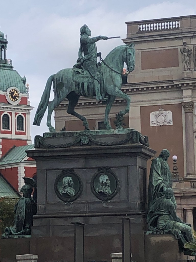 We saw Gustav Adolf II again (after meeting him in Gothenburg). Like St. Erik, he died young (age 37) after assuming the throne at age 16. The statue is very close to the parliament building and the spot where Greta Thunburg began doing Friday for Future protests as a 15-year-old in 2018.
