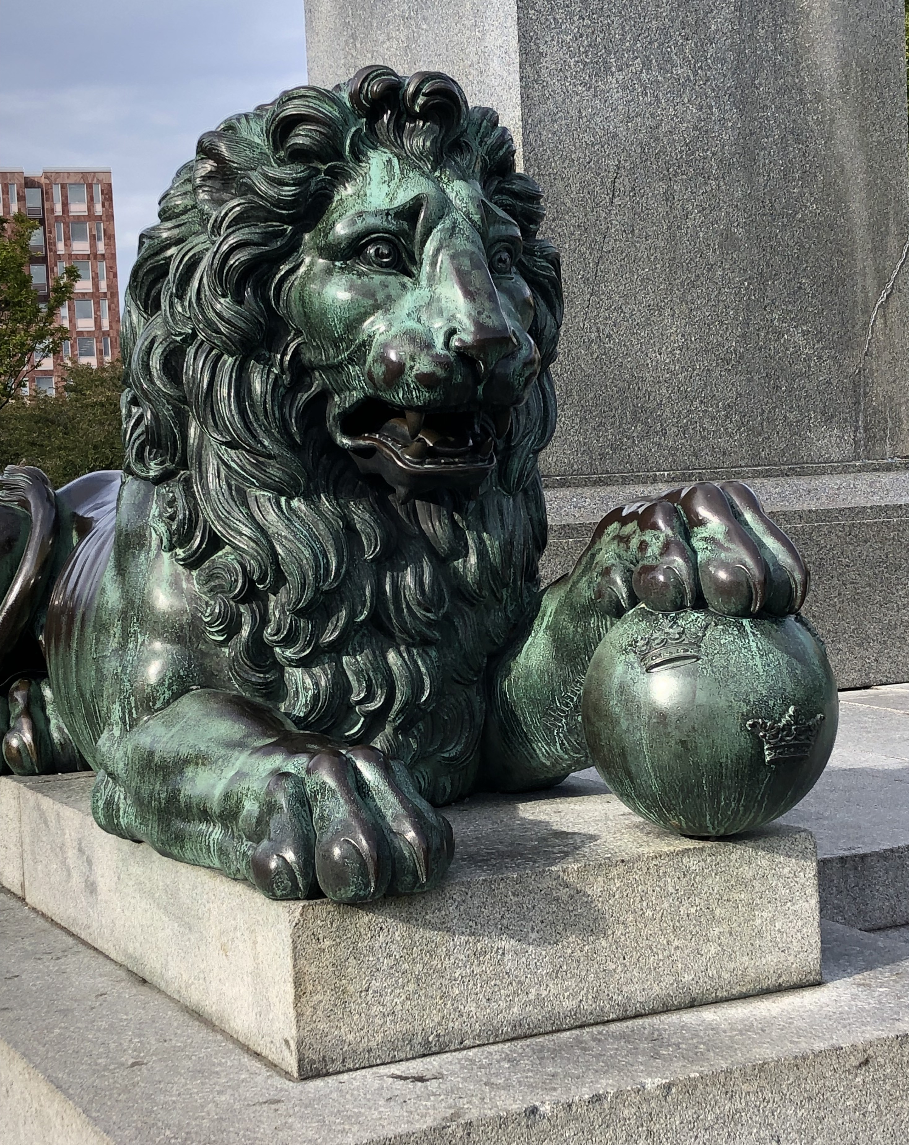 Stockholm’s recent lion additions come in three different sizes (plus small tourist souvenirs). They’re actually concrete barriers installed after a violent attack in 2017 (a 10-minute walk in a different direction from our hotel), during which a terrorist drove a truck into sidewalk crowds, killing five people. These barriers are so much better than the plain block curbstones we normally see in the US. With smiling lion faces, they’re good for kids to play on and offer seniors frequent spots to stop and take a rest.
