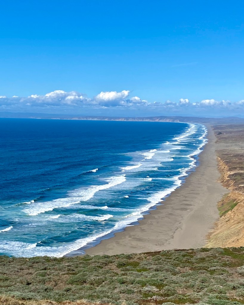 The seashore itself lived up to the promise of “thunderous ocean breakers crashing against rocky headlands and expansive sand beaches,” the description from the National Park Service. We saw and heard raging waves of white surf against golden sand under a blue sky. The primo viewing spot is from the South Beach Overlook, with breaking waves stretching for miles.