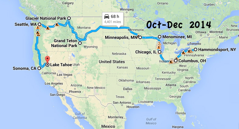 Post Script (a big one): Our first travels worked so well that we did it again. Fall 2015 to spring 2016 took us back across the country for several months in the Lake Tahoe area and then on to South and Central America. Join us…