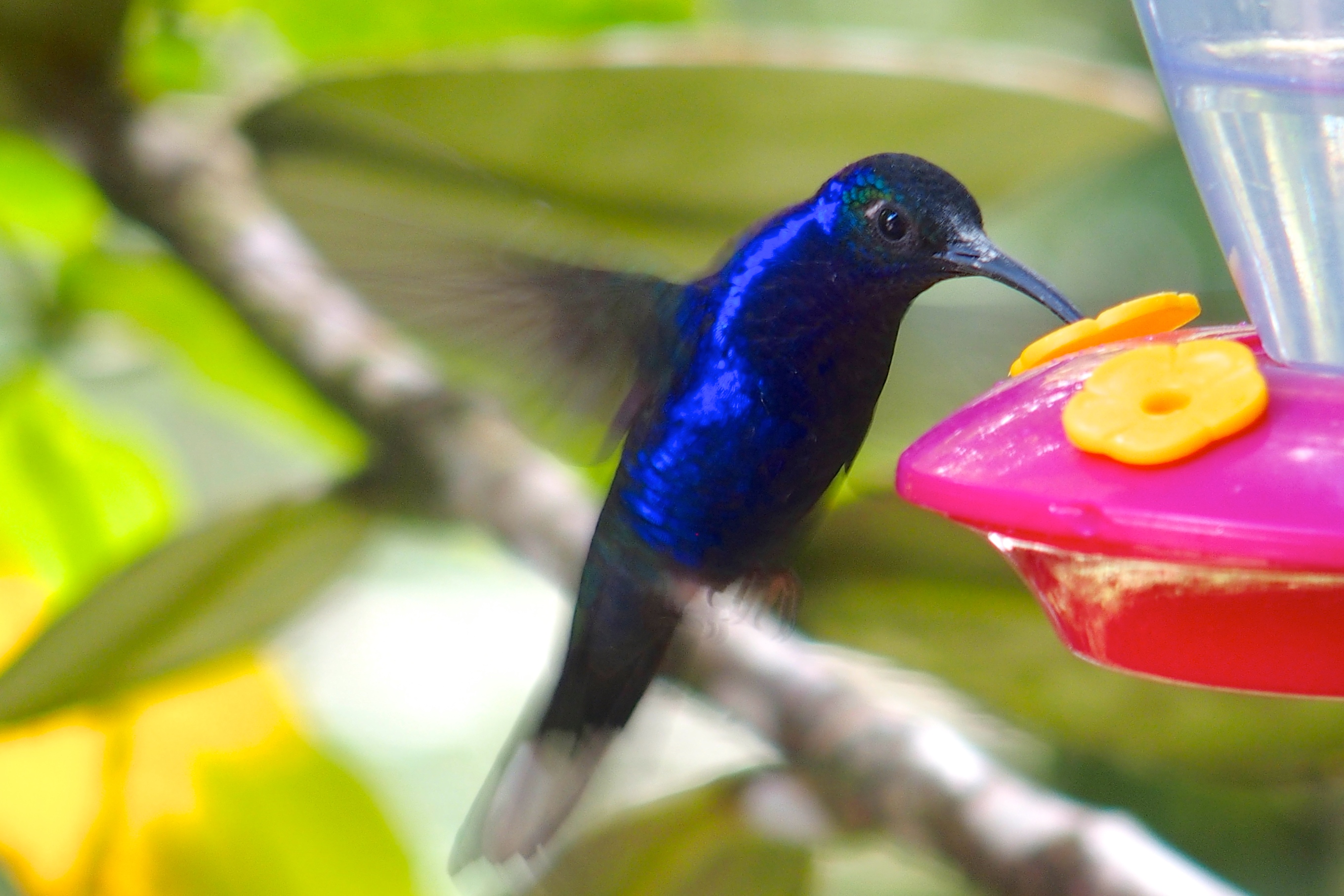 Very difficult to photograph the rapidly moving wings. Love the color!
